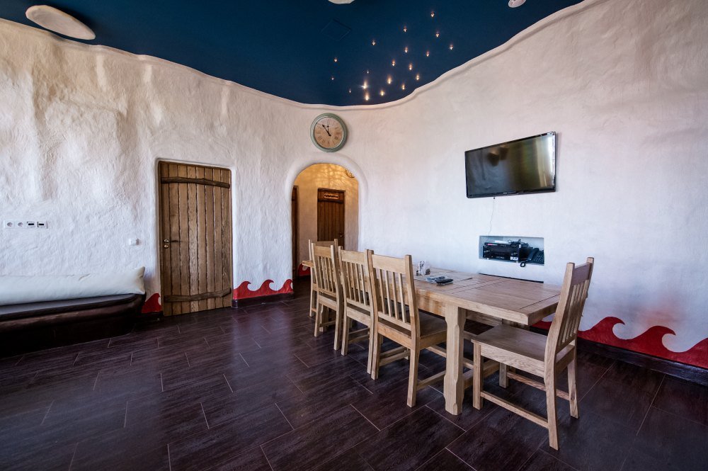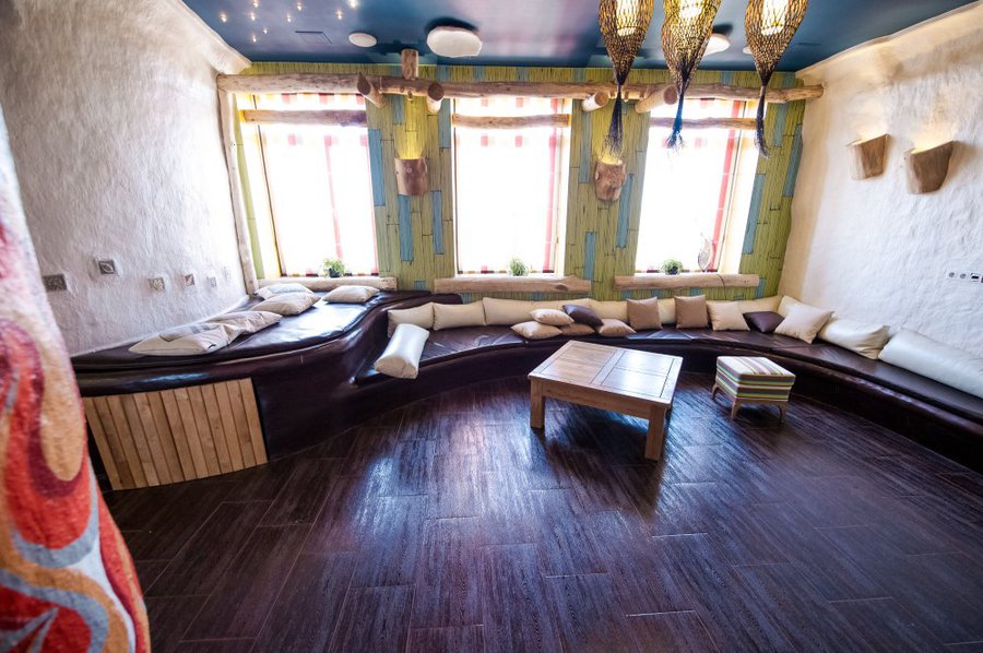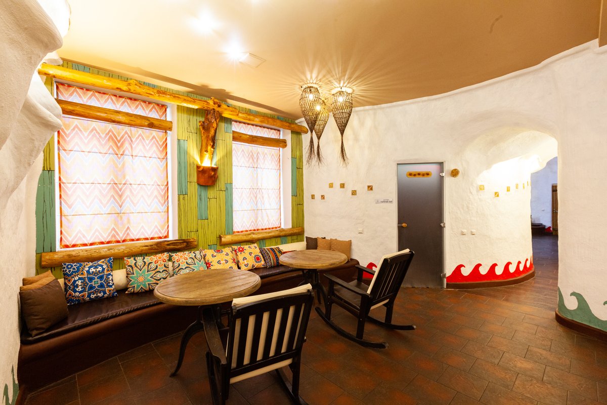 Не хочется в бассейн? Не беда! Вместо этого можно передохнуть в нашей комнате отдыха. Мы ставили своей целью создать здесь уютный, практичный интерьер из преимущественно натуральных, безопасных материалов, подобрать мебель, которая будет в равной степени удобной и красивой. Надеемся, что он придется вам по душе! Для поддержания атмосферы отдыха мы можем предложить вам кальян. Также у нас имеется бар, где вы можете приобрести блюда русской кухни. Главное помните, что плотная трапеза незадолго перед посещением парной - это не самая удачная идея, по мнению докторов. А вот после парной она совсем не повредит!